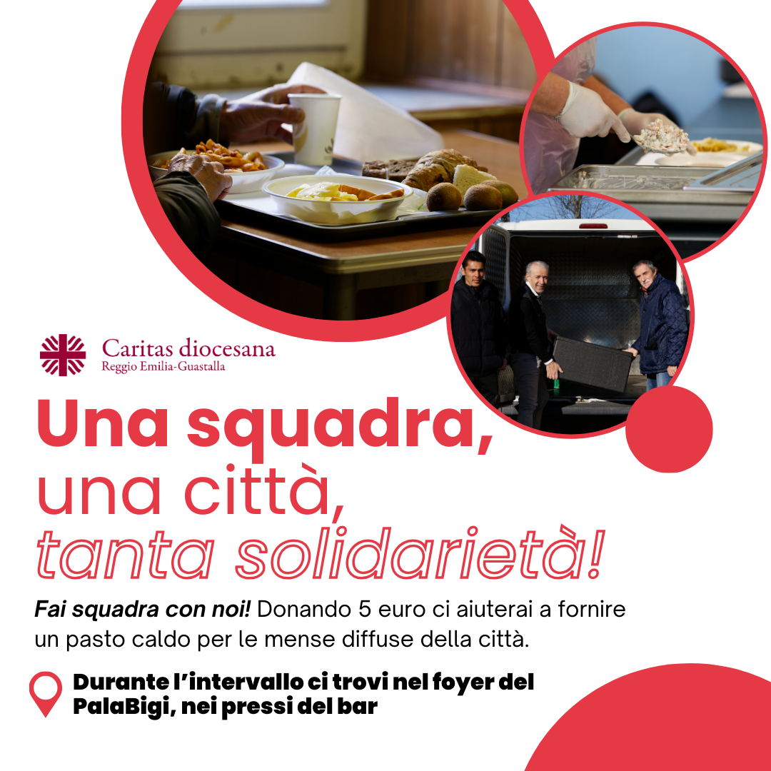 Come di consueto durante i match casalinghi della UNAHOTELS, nell’ottica del progetto “We CaRe” i biancorossi scenderanno in campo a fianco di un’associazione del territorio. Domenica sarà il turno della Caritas Diocesana di Reggio Emilia e Guastalla. Quando si pensa alla Caritas viene subito in mente l’impegno per le persone in difficoltà portato avanti quotidianamente da volontari e operatori impegnati nei centri di ascolto, nelle mense, nelle locande di accoglienza e nei tanti progetti. Ma Caritas non fa solo questo, contribuisce anche alla costruzione di una società più solidale in cui tutte le persone si sentono corresponsabili della condizione del prossimo. In tal senso il prossimo 24 novembre, giorno della festa del Santo Patrono, i giocatori delle formazioni giovanili biancorosse presteranno servizio ad una delle mense Caritas reggiane: un modo concreto per conoscere la realtà che vivono le persone più in difficoltà a Reggio e contribuire attivamente dando anche un esempio educativo alle generazioni più giovani. Per chi vorrà ulteriormente aiutare la Caritas Reggio Emilia, un banchetto sarà presente domenica all’interno del foyer del PalaBigi per fare squadra anche nel campo della solidarietà.