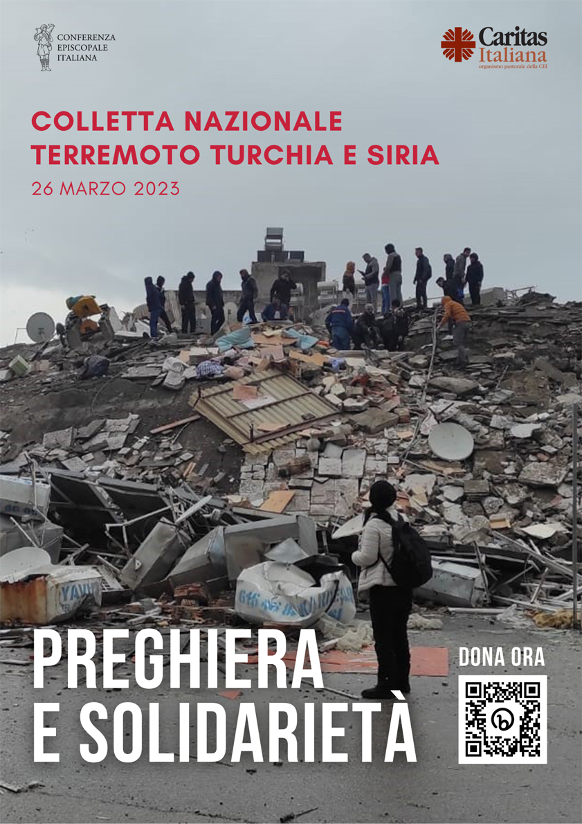 “Il 26 marzo, V Domenica di Quaresima, in tutte le chiese si svolge una colletta nazionale e le offerte raccolte sono destinate tramite Caritas Italiana a favore delle popolazioni in Turchia e Siria colpite lo scorso febbraio da un devastante terremoto. Per accompagnarle concretamente e restare a lungo accanto a loro anche nella fase della ricostruzione, come è nello stile Caritas, servono certamente molti fondi. Ma la colletta va colta soprattutto come un’opportunità di animazione delle comunità, di riflessione, preghiera e conversione, sguardo aperto al mondo.